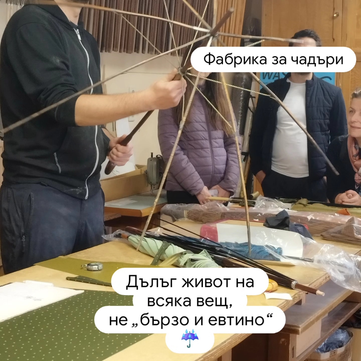 - работилница за чадъри, в която акцентът беше върху качеството и ремонта – вместо просто да изхвърлим счупения чадър