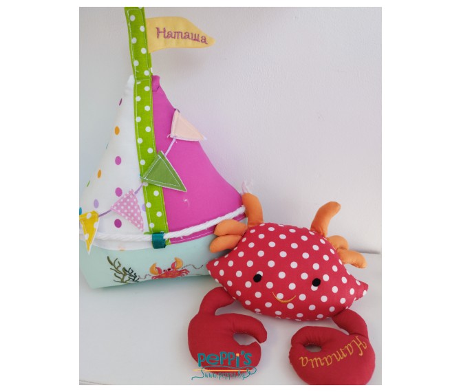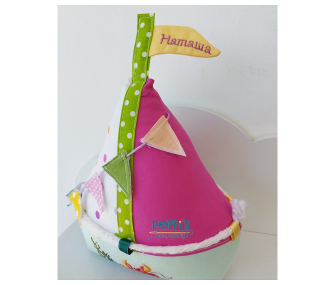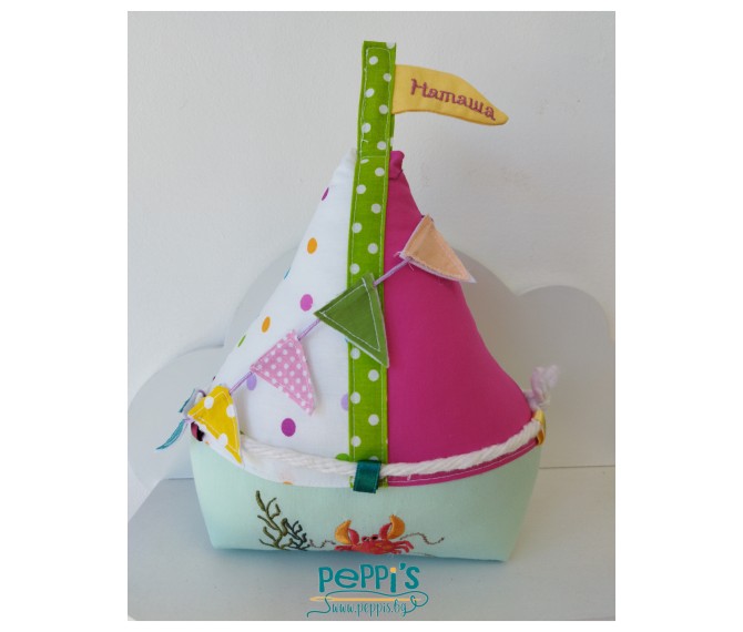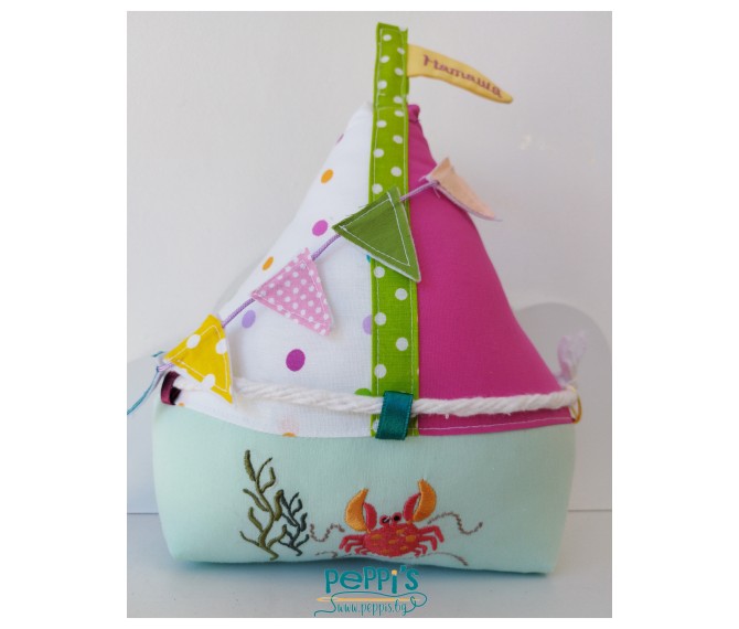Мини персонализирана възглавничка за бебе от памук Платноходка